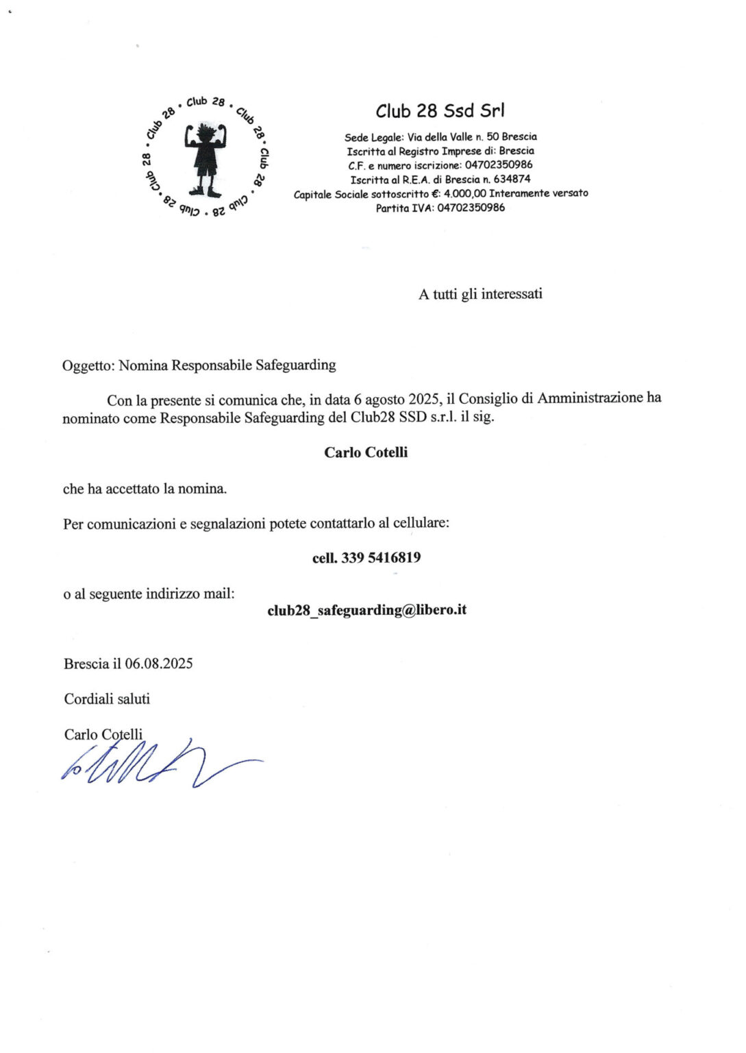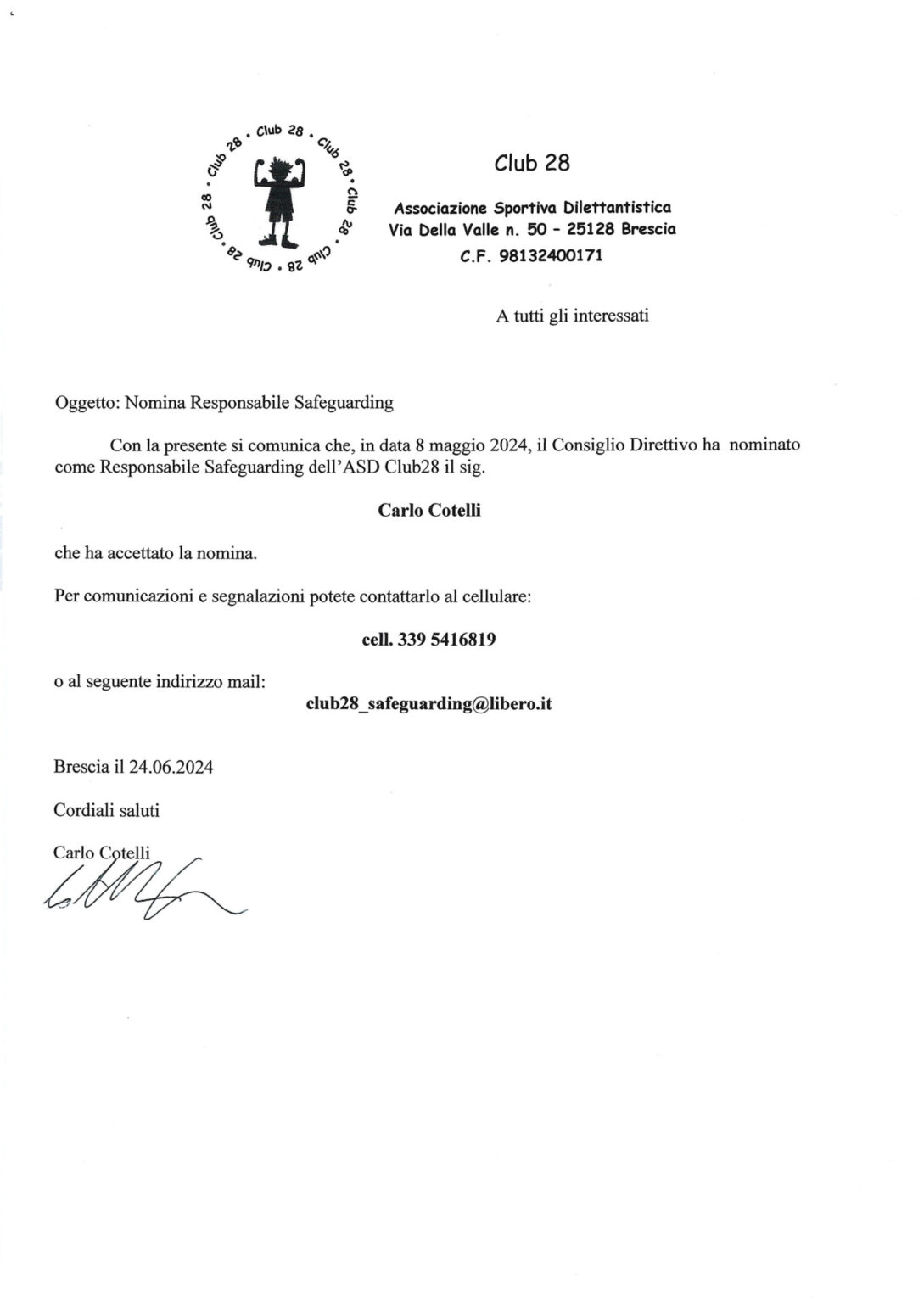 Il consiglio direttivo della società a.s.d. Club28 è così articolato: