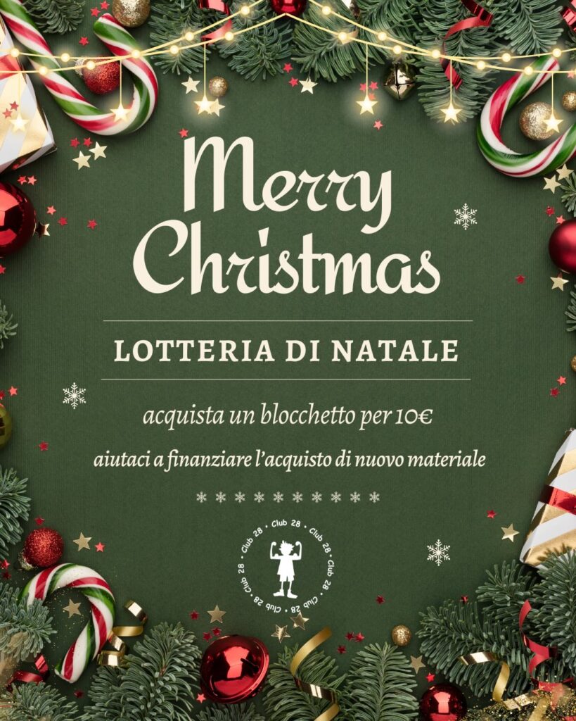 In occasione del Natale, anche quest’anno, il Club 28 ha pensato di organizzare una lotteria per raccogliere fondi e acquistare nuovi attrezzi per le nostre ginnaste🎄✨